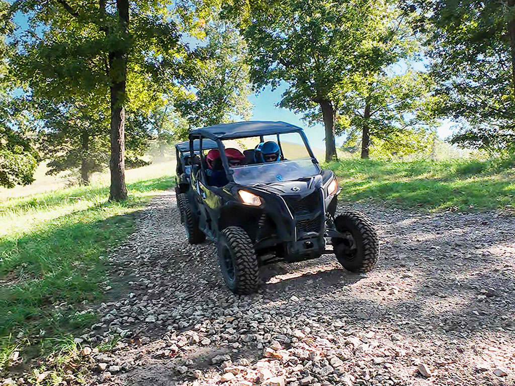 At Hog Wild Adventures we offer a curated, off-road trail riding experience that is family friendly and fun for riders of all skill levels. All of our tours are guided by professional, local guides that go out of their way to ensure that our guests have a fun yet safe ride. You drive one of our Can-Am vehicles while following our guides down 10.4 miles of trail on our 1100 acre ranch. You'll experience steep climbs, creek crossings, and beautiful panoramic views as you traverse the rugged terrain of the Ozarks. So book a tour with us and experience the Ozarks with Hog Wild Adventures!
